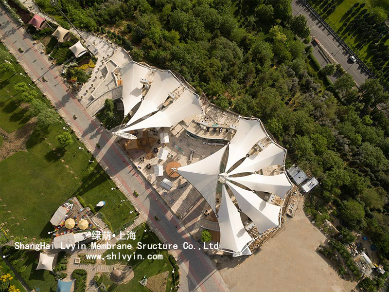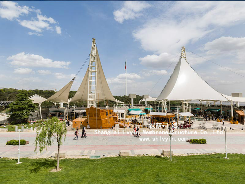 3. 永久性性膜材,使用年限30年以上。對太陽能的反射率高,所以熱吸收量很少。即使在夏季炎熱的日光的照射下室內(nèi)也不會受太大影響。正是因為這種劃時代性的膜材料的發(fā)明,才使膜結(jié)構(gòu)建筑從人們想象中的帳篷或臨時性建筑發(fā)展成現(xiàn)代化的永久性建筑。