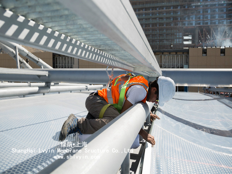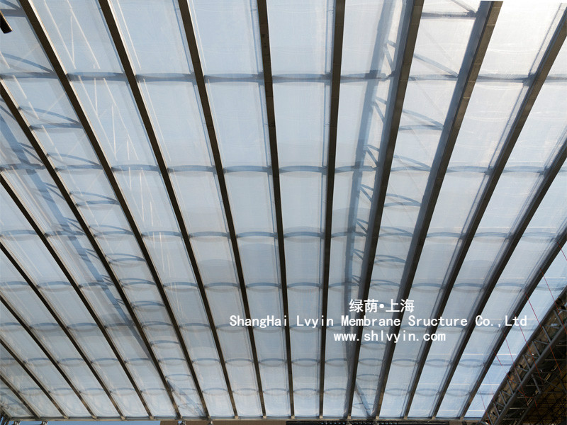 1)ETFE膜是由人工高強(qiáng)度氟聚合物(ETFE)制成,其特有抗粘著表面使其具有高抗污,易清洗的特點(diǎn),通常雨水即可清除主要污垢。