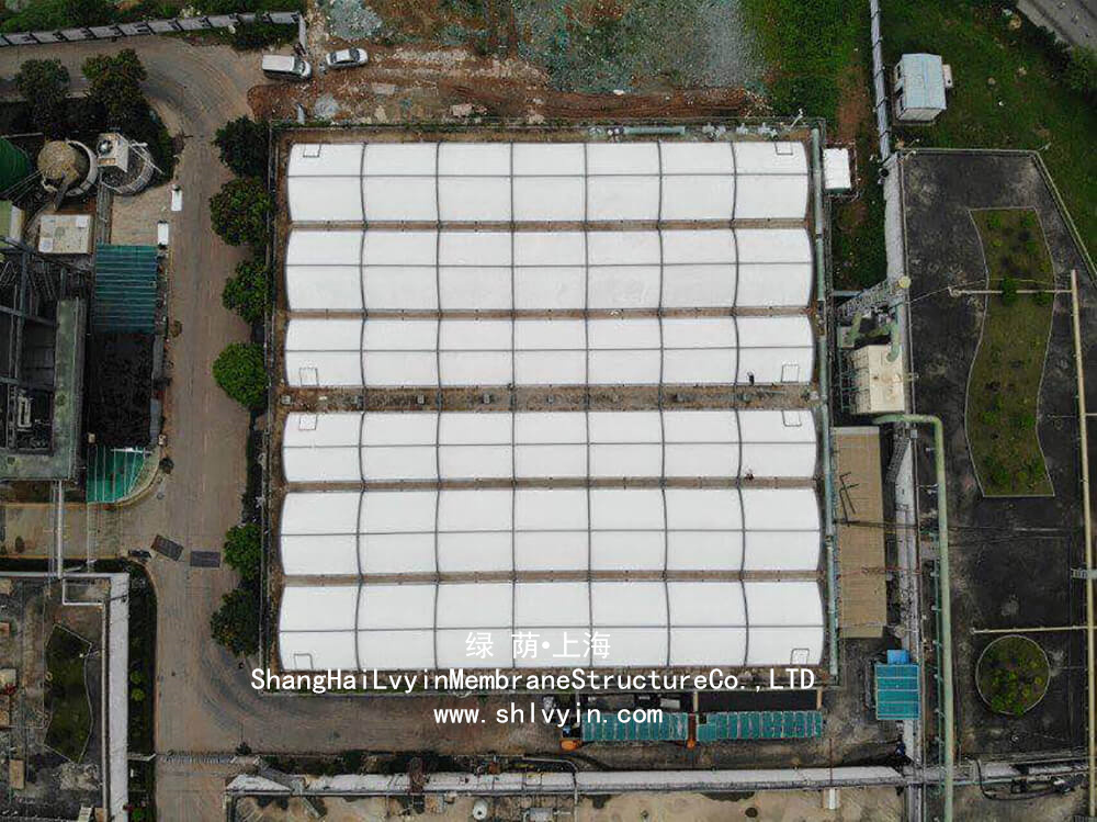易維護(hù):檢修方便,反吊膜罩棚在現(xiàn)場(chǎng)安裝完成后,可根據(jù)不同的設(shè)備開設(shè)檢修口,預(yù)留門洞,方便污水池中各種設(shè)備的定期維護(hù)和檢查。