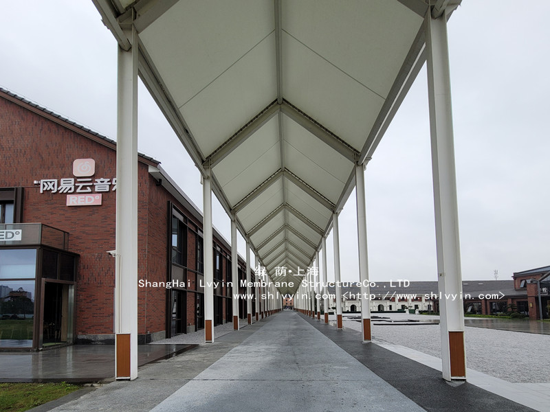 位于寧波文創(chuàng)港規(guī)劃運河區(qū),架起了一處膜結(jié)構(gòu)長廊,采用進口PTFE膜材: