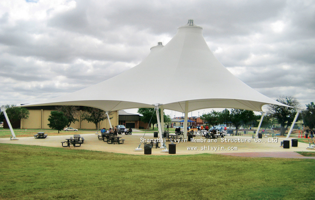 3. 永久性性膜材,使用年限30年以上。對太陽能的反射率高,所以熱吸收量很少。即使在夏季炎熱的日光的照射下室內(nèi)也不會受太大影響。正是因為這種劃時代性的膜材料的發(fā)明,才使膜結(jié)構(gòu)建筑從人們想象中的帳篷或臨時性建筑發(fā)展成現(xiàn)代化的永久性建筑。
