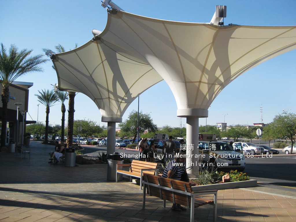 3. 永久性性膜材,使用年限30年以上。對太陽能的反射率高,所以熱吸收量很少。即使在夏季炎熱的日光的照射下室內(nèi)也不會受太大影響。正是因為這種劃時代性的膜材料的發(fā)明,才使膜結構建筑從人們想象中的帳篷或臨時性建筑發(fā)展成現(xiàn)代化的永久性建筑。
