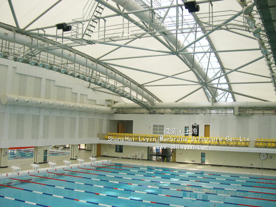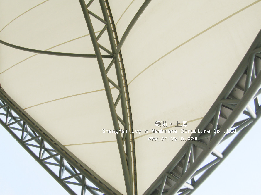 3. 永久性性膜材,使用年限30年以上。對(duì)太陽能的反射率高,所以熱吸收量很少。即使在夏季炎熱的日光的照射下室內(nèi)也不會(huì)受太大影響。正是因?yàn)檫@種劃時(shí)代性的膜材料的發(fā)明,才使膜結(jié)構(gòu)建筑從人們想象中的帳篷或臨時(shí)性建筑發(fā)展成現(xiàn)代化的永久性建筑。